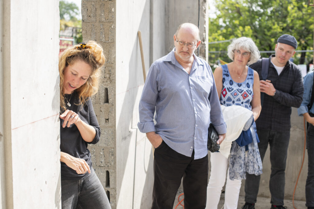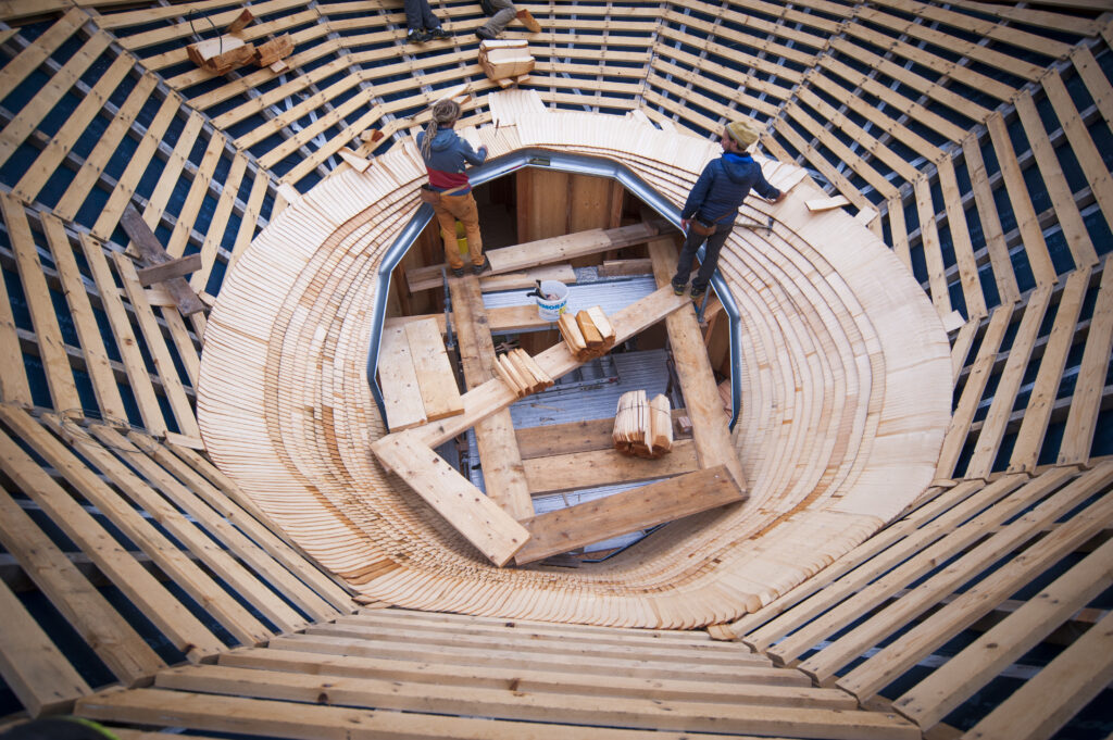 Je suis fasciné par les gestes métiers. Voir réaliser les emboîtements d’une charpente, des enduits à la chaux, un mélange de béton de chanvre, choisir et poser des lots de tavillons, modeler et goudronner un pumptrack… Ce sont également les actions de médiation, les performances réalisées in-situ dans ces lieux en transformation, qui m’enrichissent.